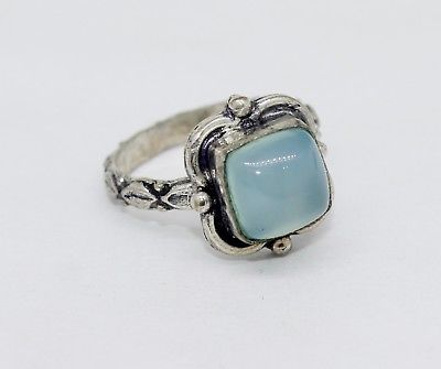 925 Silver Overlay Antique Style Ring Blue Chalcedony Ring Gemstone Ring size 7