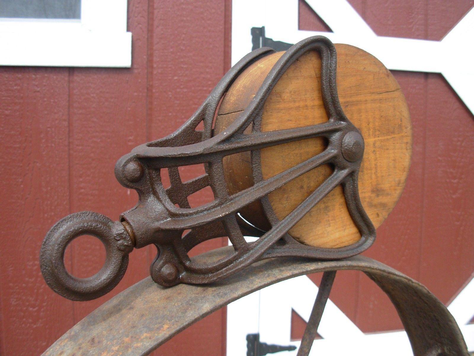 Title (ebay affiliate link): OLD VINTAGE THICK CAST IRON & WOOD FARM BARN HAY PULLEY