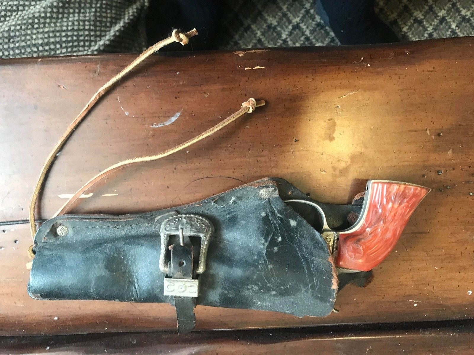 Title (ebay affiliate link): HUBLEY RODEO Western Toy Cap Gun Pistol Single Shot from the 50''s
