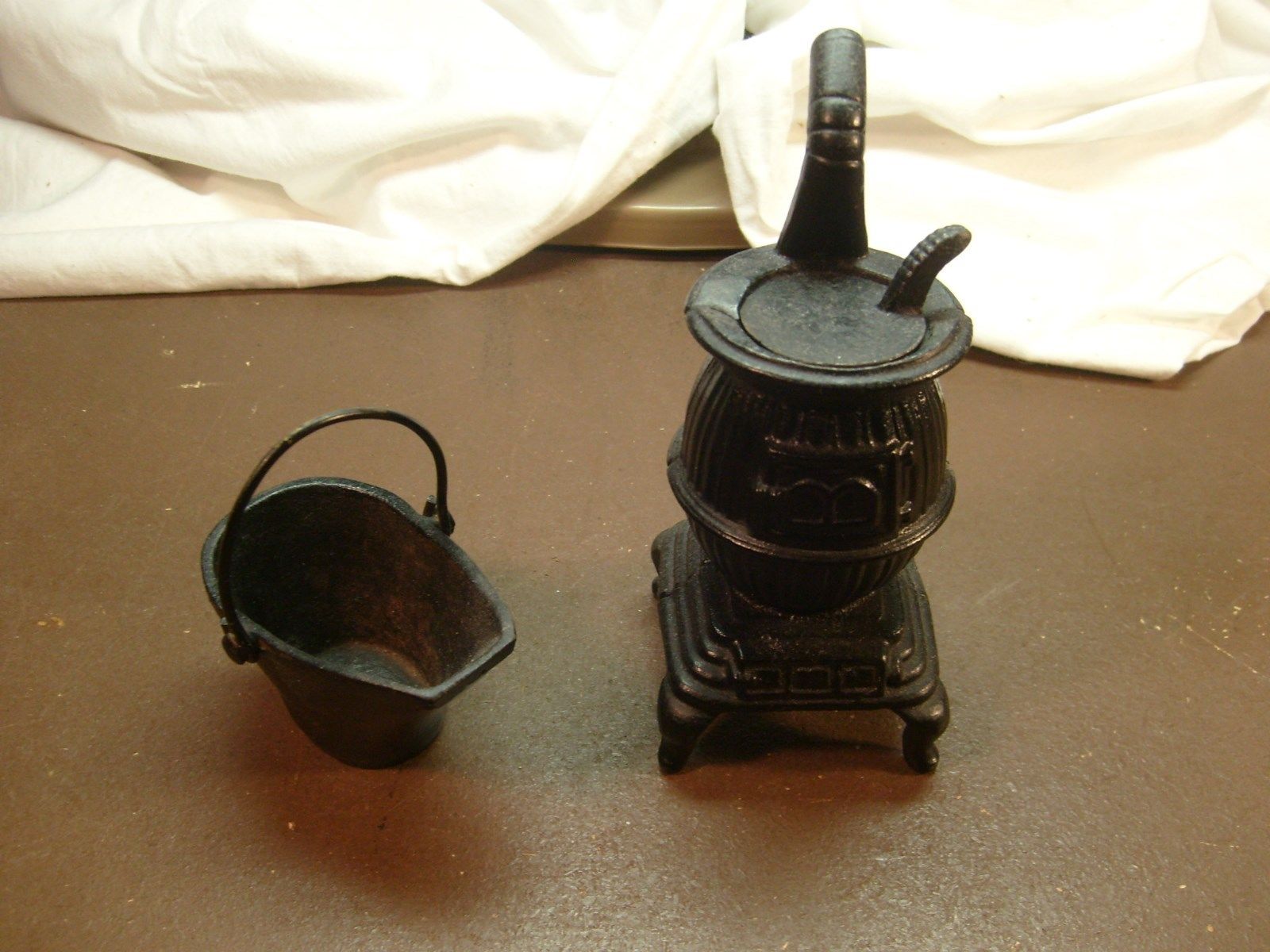 Title (ebay affiliate link): vintage cast iron toy pot belly stove with bucket