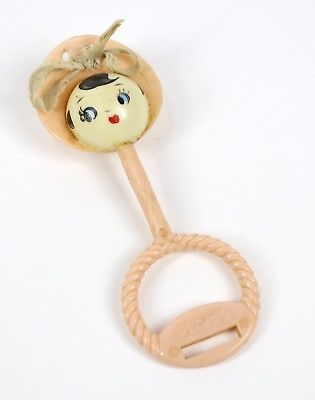 Title (ebay affiliate link): Vintage Pink 1950''s Celluloid Plastic PLAKIE Girl Bonnet Baby Rattle