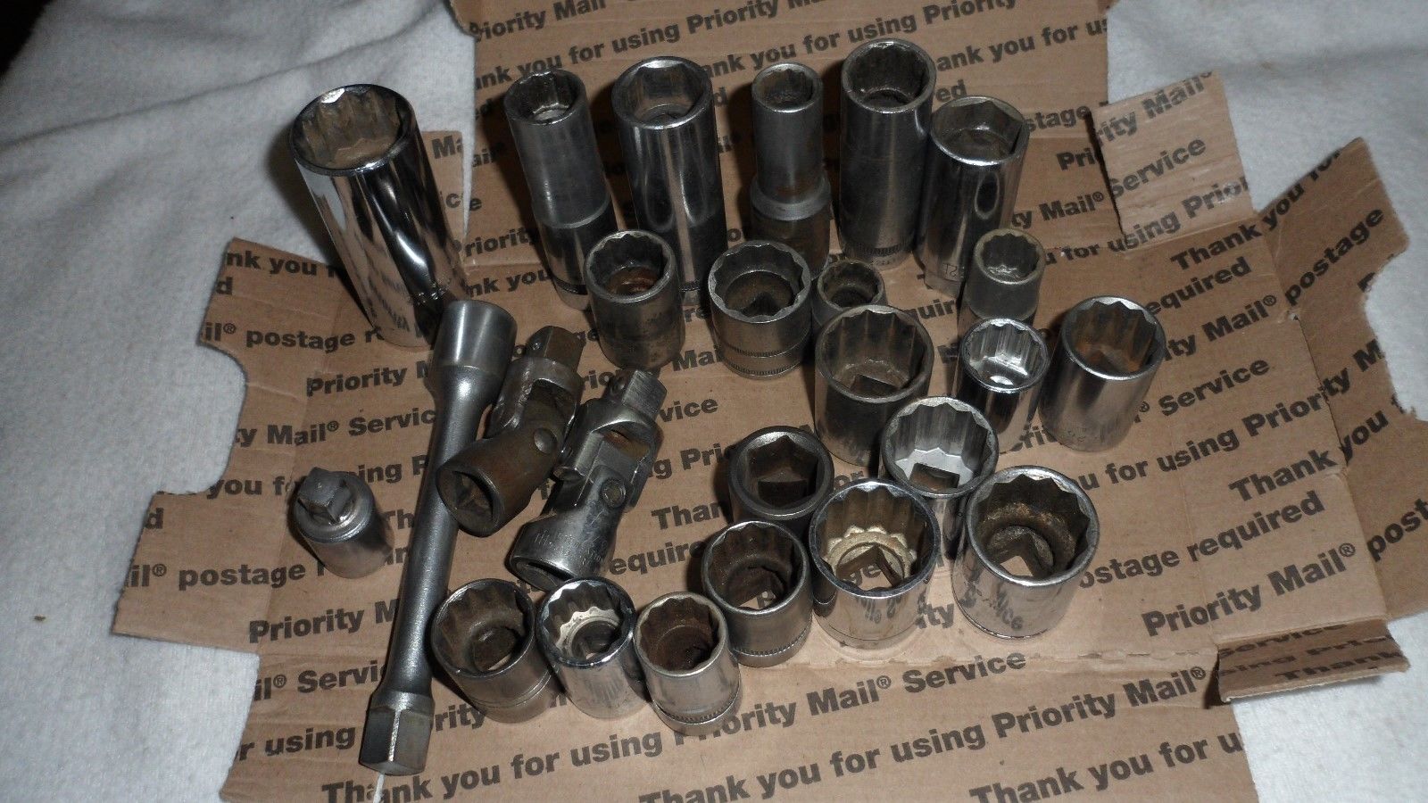 Title (ebay affiliate link): VINTAGE 1/2" DRIVE SOCKETS WITH EXTENSION AND ADAPTER MADE IN U S A