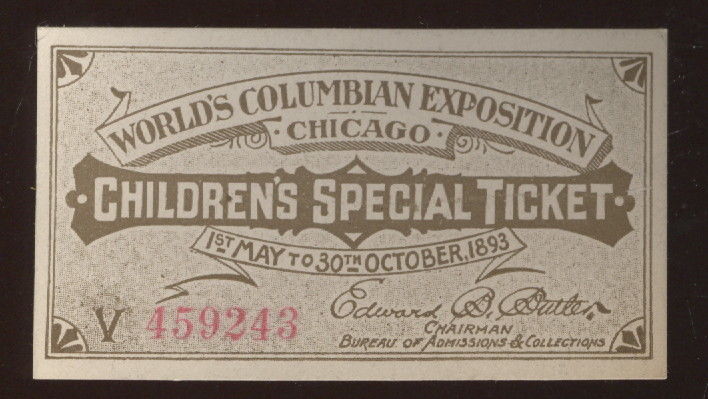 CHILDREN''S TICKET, 1893 COLUMBIAN EXPO. CHICAGO