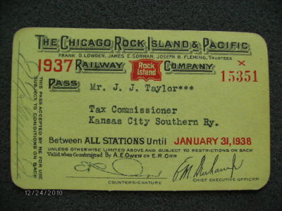 Title (ebay affiliate link): CHICAGO ROCK ISLAND & PACIFIC RAILWAY 1937 PASS TAYLOR