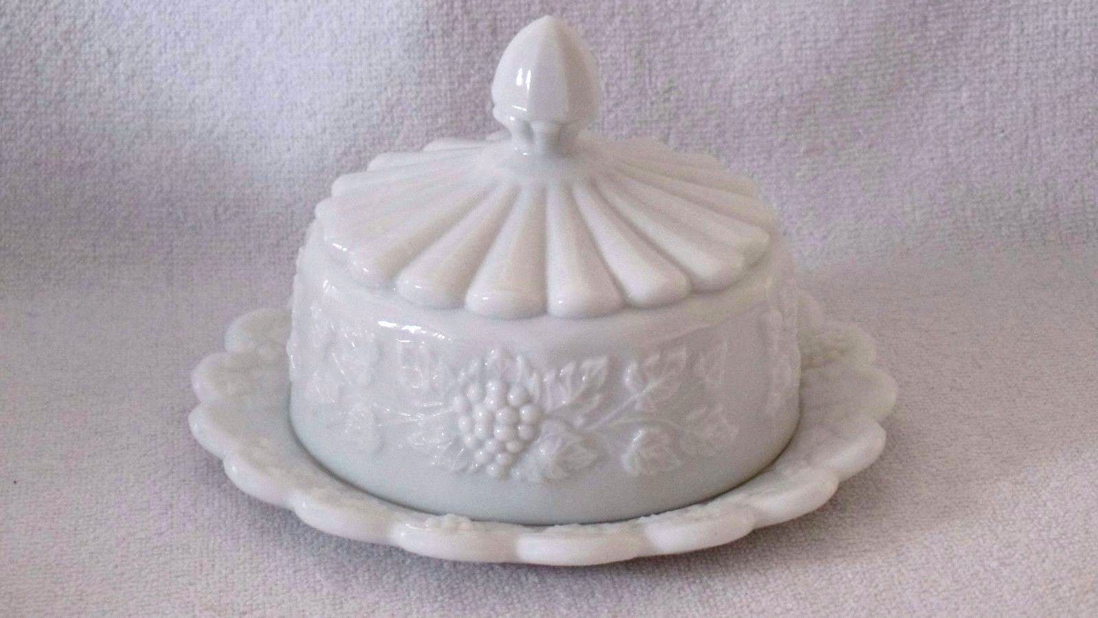 Title (ebay affiliate link): Westmoreland Milk Glass Paneled Grape Round Butter Cheese Plate Dish w/ Lid