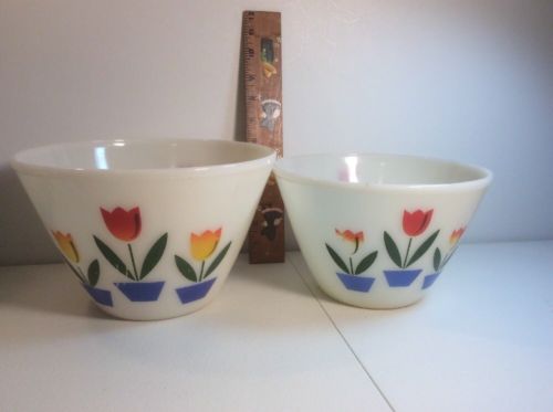 2 Vintage FIRE KING TULIPS MIXING BOWLS Milk Glass