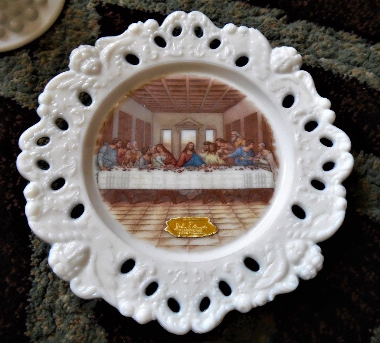 Title (ebay affiliate link): Vintage Last Supper Plate Milk Glass Kemple Glass Rare Putti Lace Edge Decor 40s