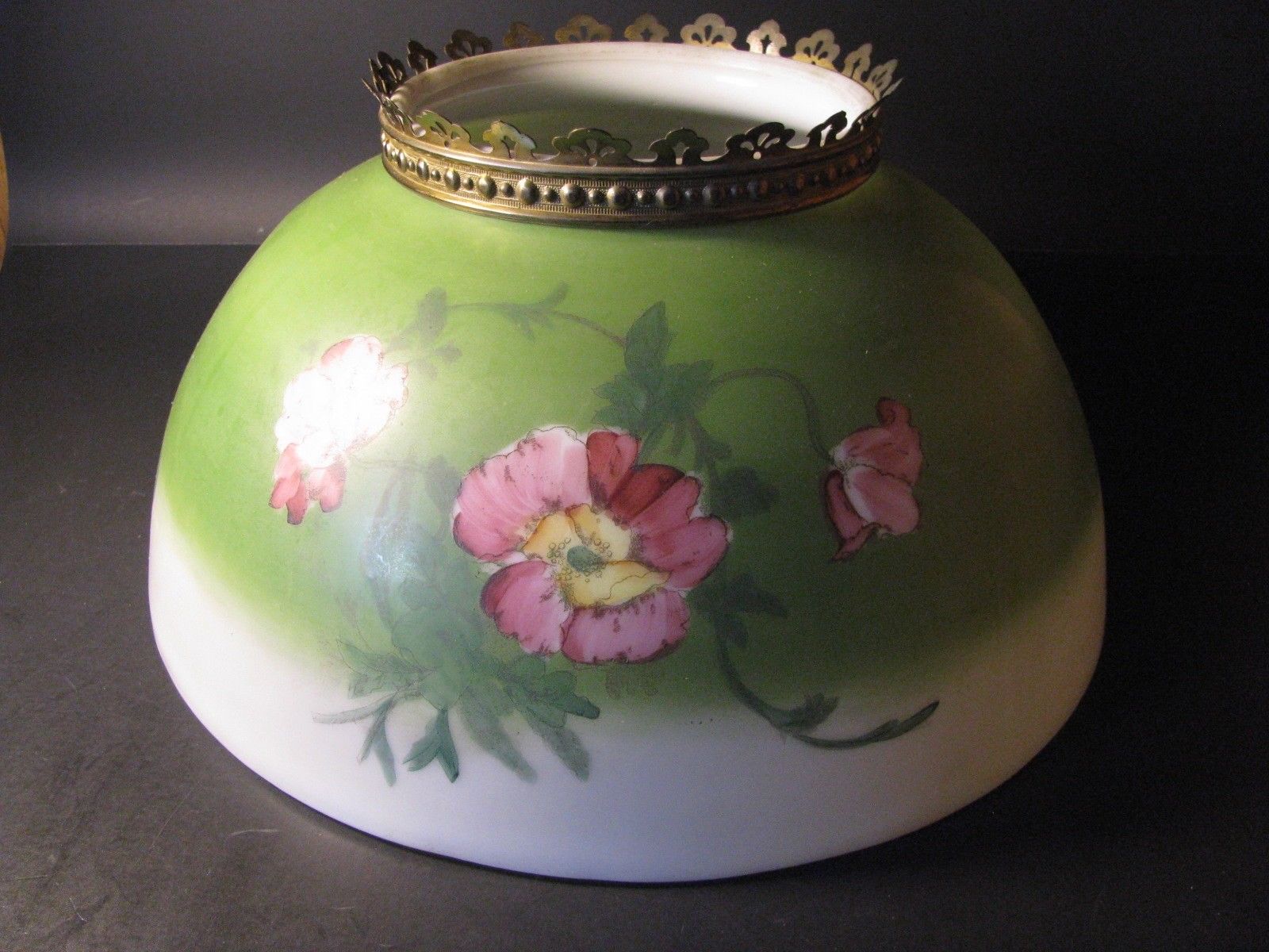 Title (ebay affiliate link): Antique Milk Glass 13 7/8" Hanging Parlor Library Oil Lamp Shade Hand Painted