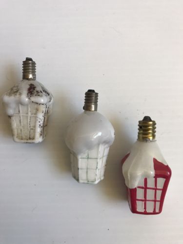Title (ebay affiliate link): Vintage Milk Glass Figural LANTERN Christmas Light Bulb ornament snow covered