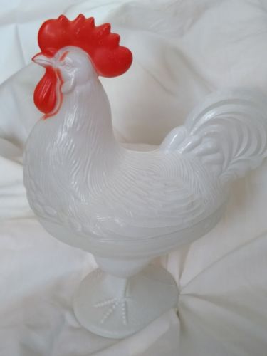 Title (ebay affiliate link): Vintage Westmoreland Milk Glass Rooster HAND PAINTED Chicken Covered Candy Dish