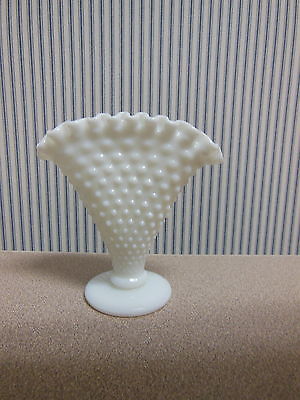 1950''s FENTON HOBNAIL MILK GLASS fan shape VASE