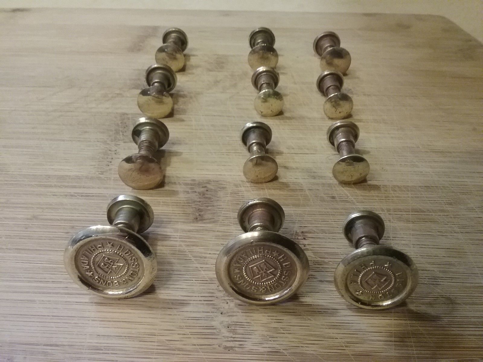 Title (ebay affiliate link): 3 Vintage Disston Brass Saw Medallions and 9 Disston Brass Buttons