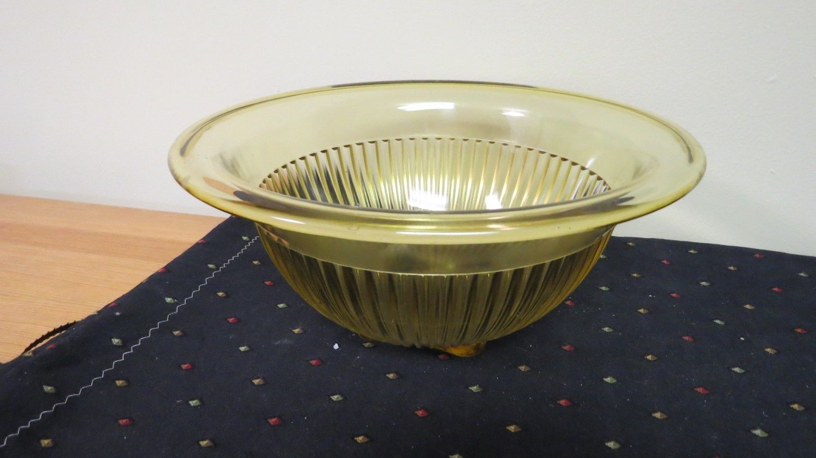 Title (ebay affiliate link): Vintage Amber Depression Glass Large Mixing Bowl, Ribbed Body, Square Foot