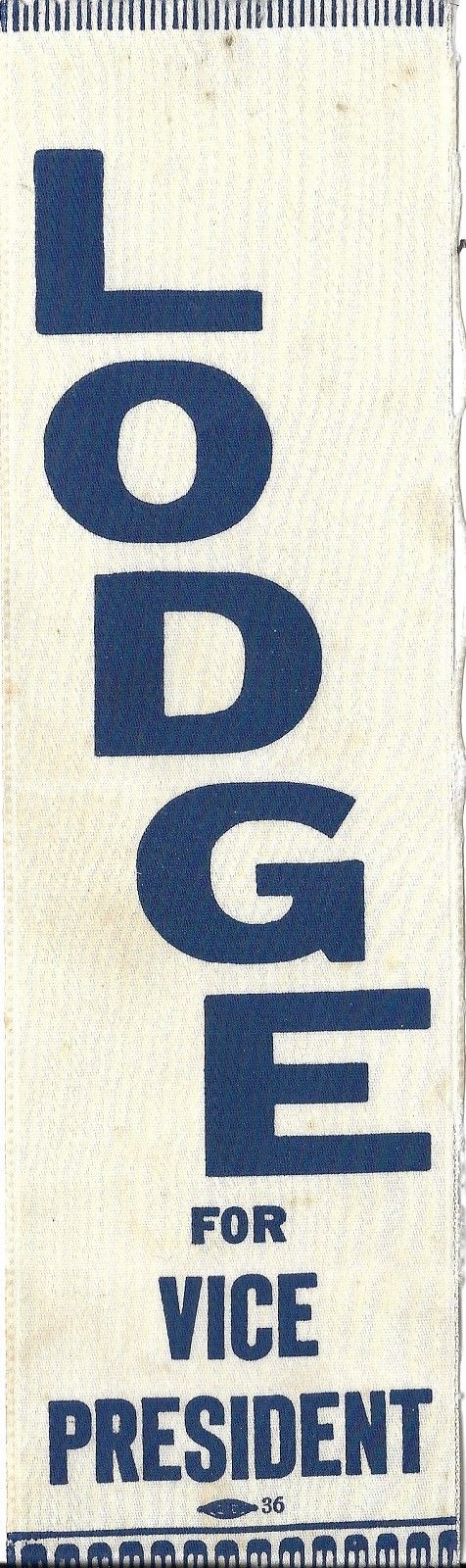 Title (ebay affiliate link): HENRY CABOT LODGE FOR VICE PRESIDENT UNUSUAL 1960 POLITICAL CAMPAIGN RIBBON
