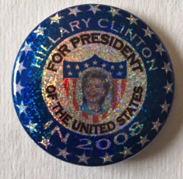 Title (ebay affiliate link): Gorgeous 1 1/2" Guardfrog "Holographic Looking" 2008 Hillary for Prez Pin Button