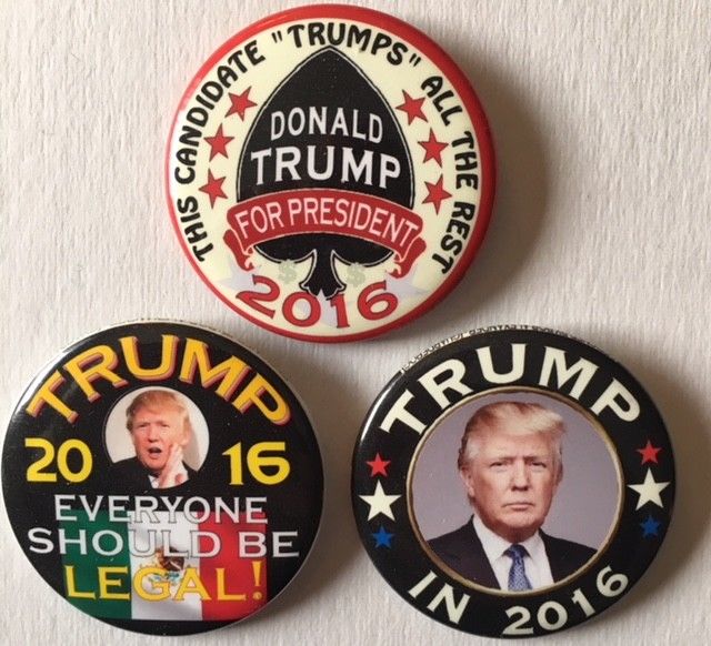Title (ebay affiliate link): Three 2 1/4" Guardfrog Pro-Trump Political Campaign Pin Buttons