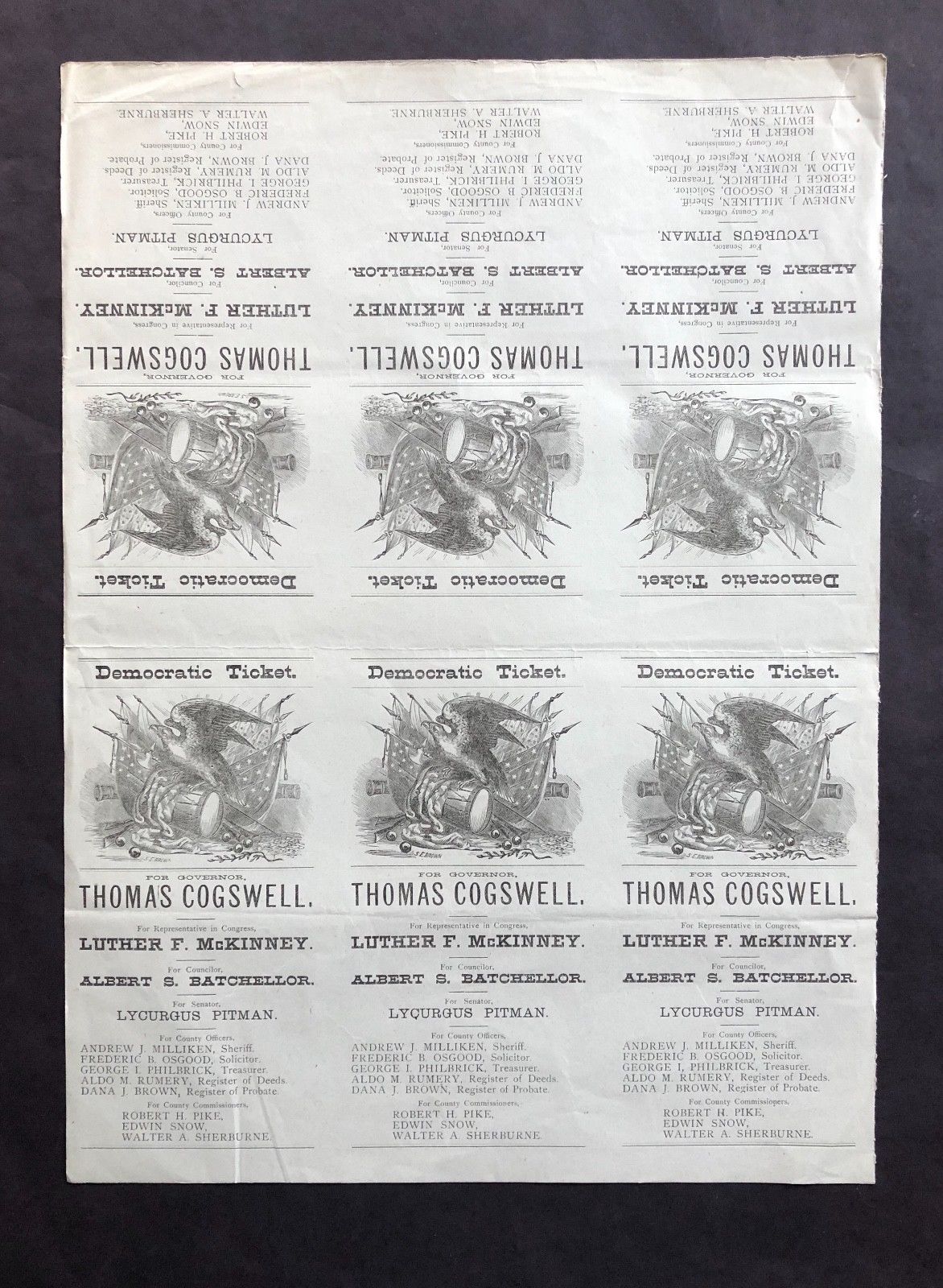 Title (ebay affiliate link): Uncut Sheet Of Six Thomas Cogswell For Governor Of New Hampshire 1886 Ballots