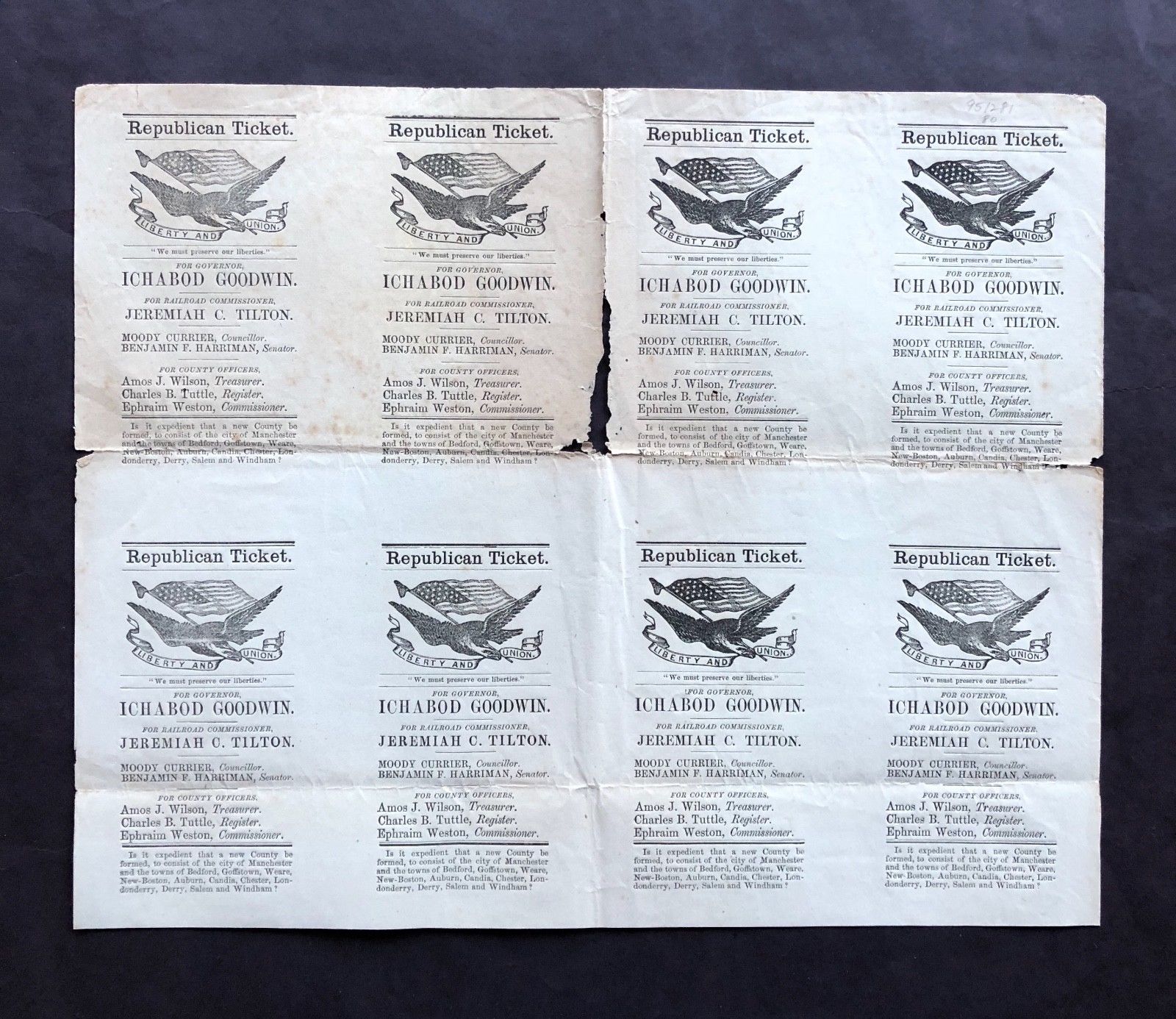 Title (ebay affiliate link): Uncut Sheet Of Eight Ichabod Goodwin 1859 New Hampshire Governor Ballots
