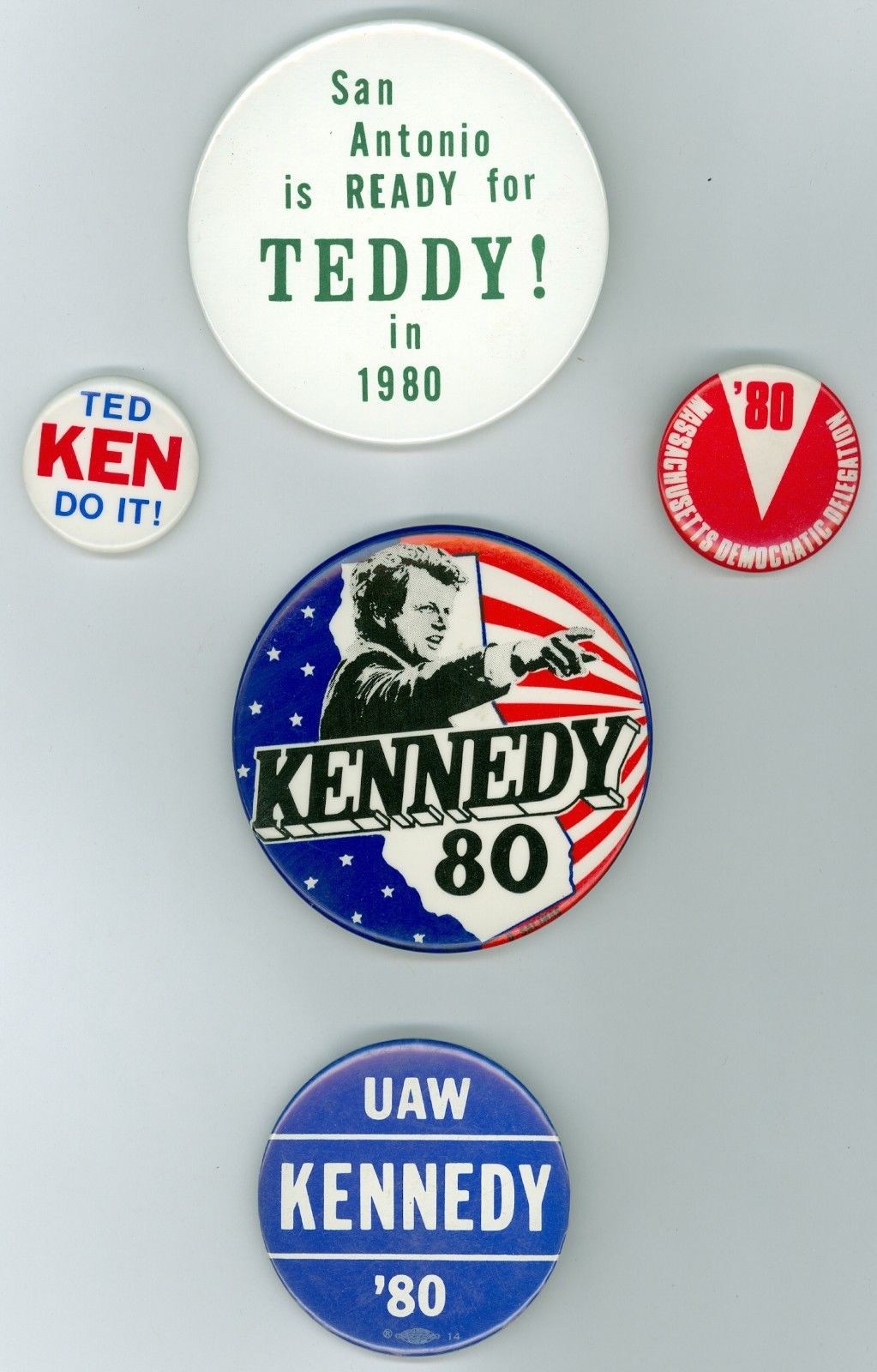 5 Vintage 1980 President Ted Kennedy Political Campaign Pinback Buttons San Anto