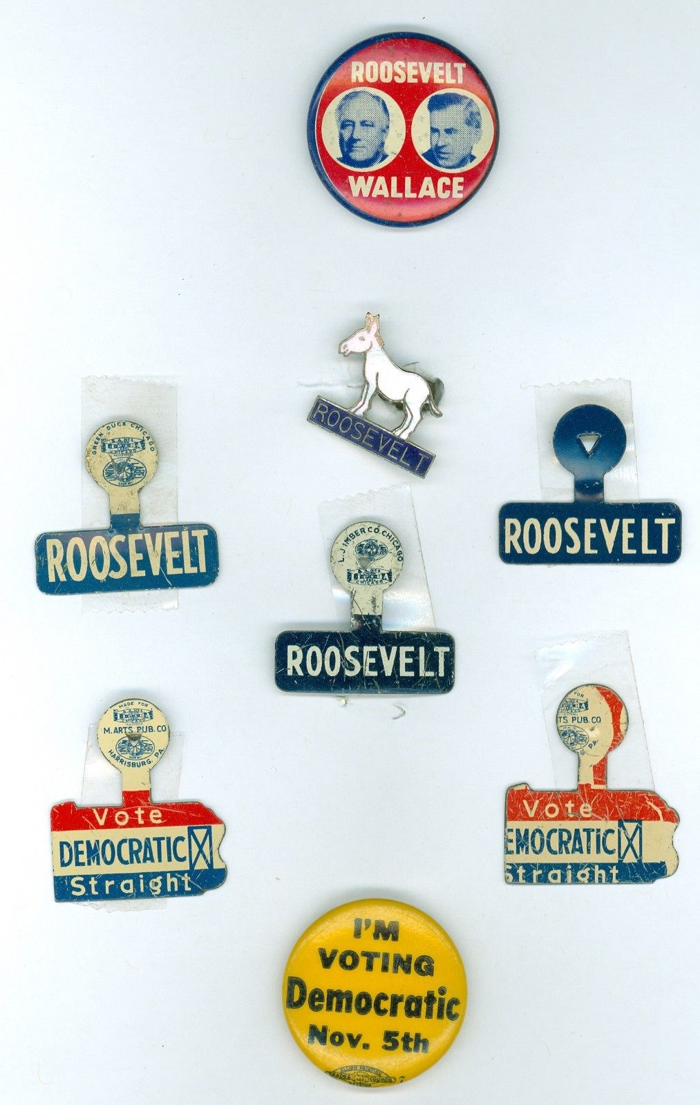 Title (ebay affiliate link): 3 Vintage ''40 President Roosevelt Political Campaign Pinback Buttons 5 Tabs FDR