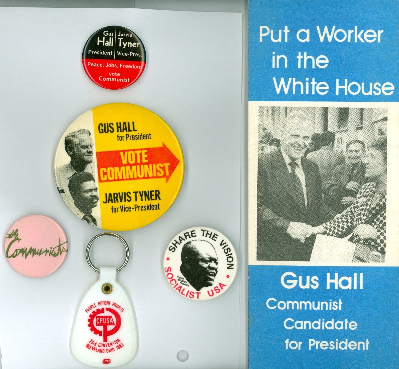 Title (ebay affiliate link): 4 Vintage 70s-80s Communist Party USA Political Pinback Buttons KeyTag &Pamphlet