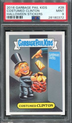 Title (ebay affiliate link): 2016 Topps GPK Halloween Stickers SP 2B Hillary Costumed Clinton /454 ~ PSA 9
