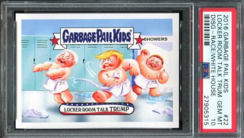 Title (ebay affiliate link): 2017 Topps GPK Disg-Race White House SSP #22 Locker Room Donald Trump ~ PSA 10