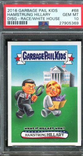 Title (ebay affiliate link): 2017 Topps GPK Disg-Race White House SSP #68 Hamstrung Hillary Clinton ~ PSA 10