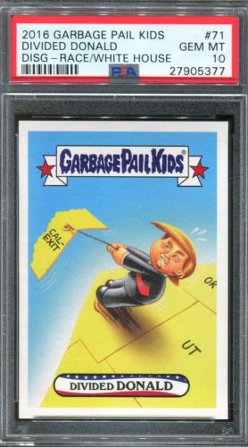 Title (ebay affiliate link): 2017 Topps GPK Disg-Race White House SSP #71 Divided Donald Trump ~ PSA 10