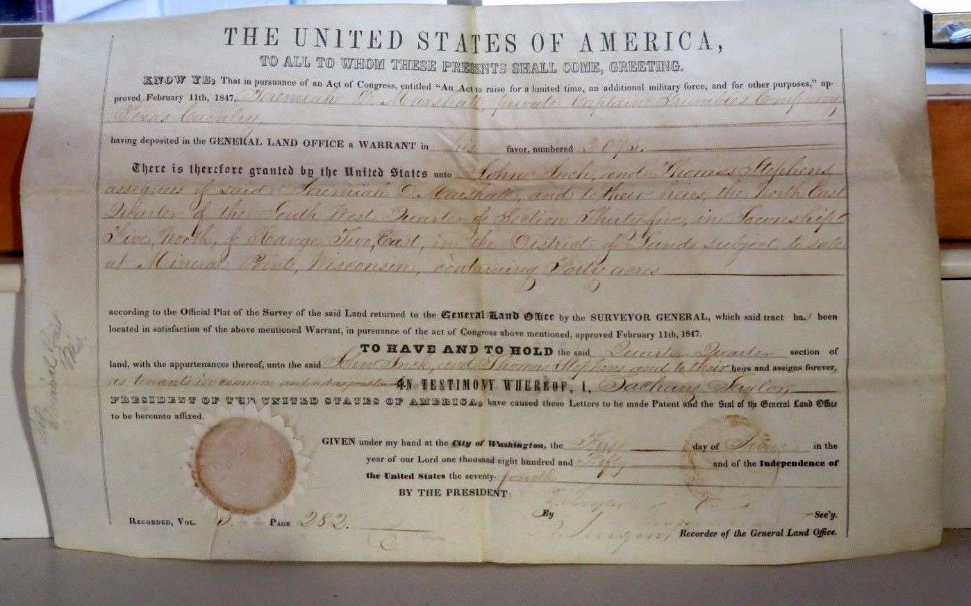 Title (ebay affiliate link): Land Grant-Wisconsin-Secretary Signed for President Zachary Taylor-1850