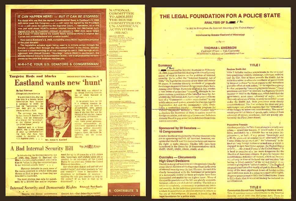 Title (ebay affiliate link): Legal Foundation For A Police State T. Emerson Yale 1968 anti-HUAC McCarthy-ism