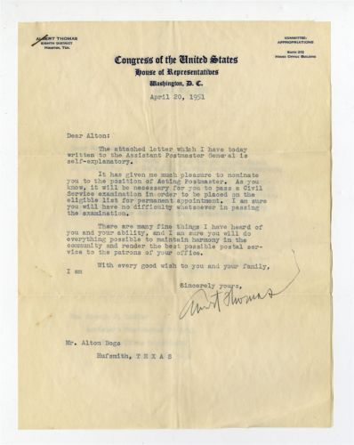 Title (ebay affiliate link): 1951 Albert Thomas Signed House Of Representatives Letters