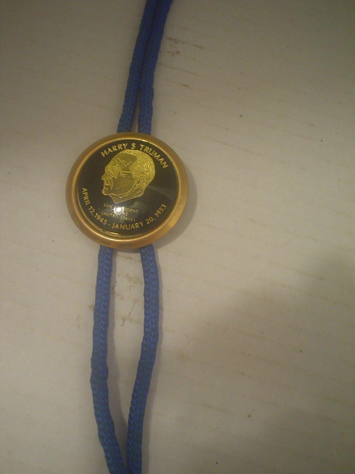 Title (ebay affiliate link): RARE VINTAGE HARRY S. TRUMAN BOLO STRING TIE, 33RD PRESIDENT, GOLD TONE. 45-53