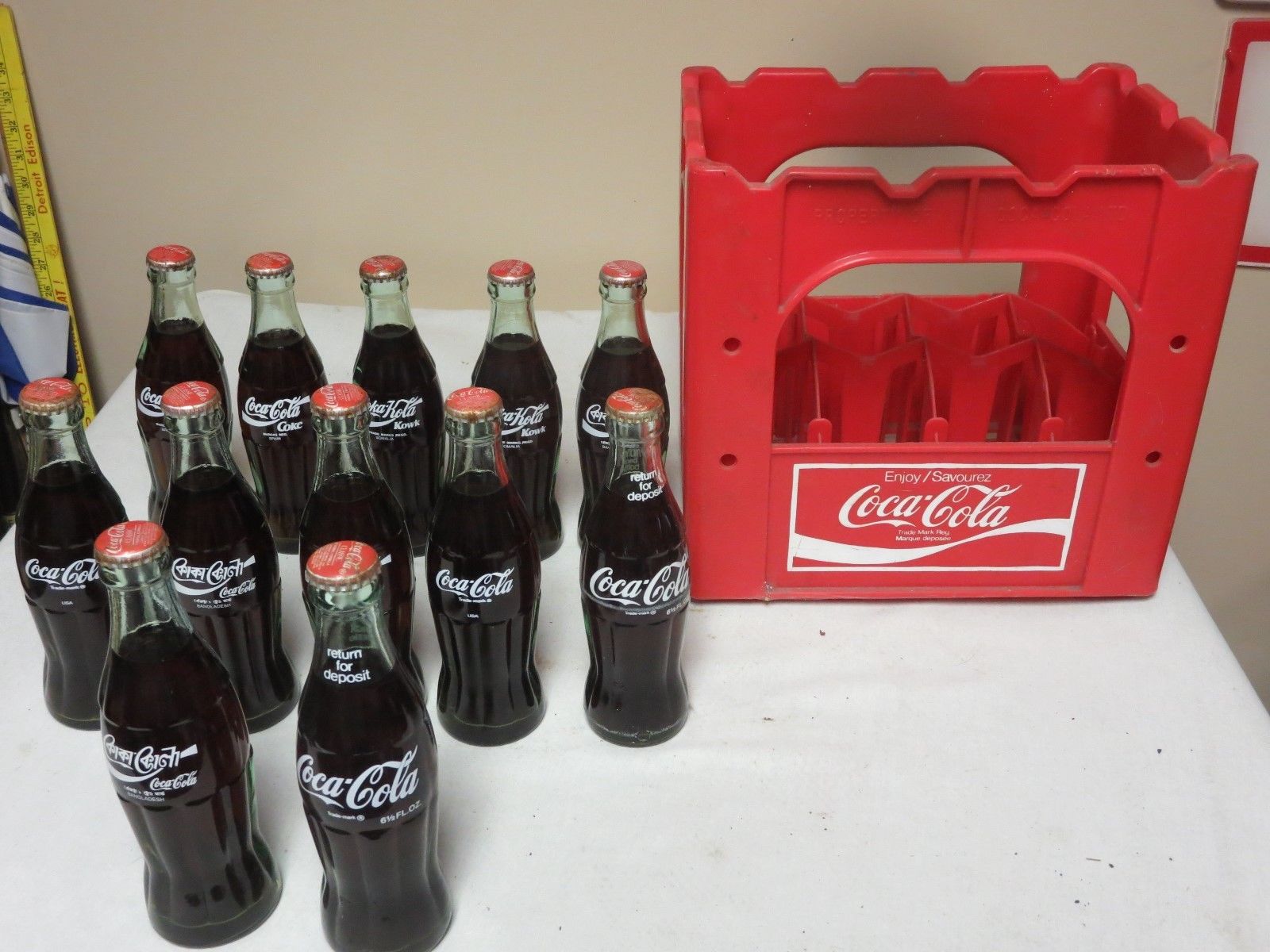 LOT OF 12 COCA COLA BOTTLES 8 OZ SIZE ALL FULL IN CANADA CRATE