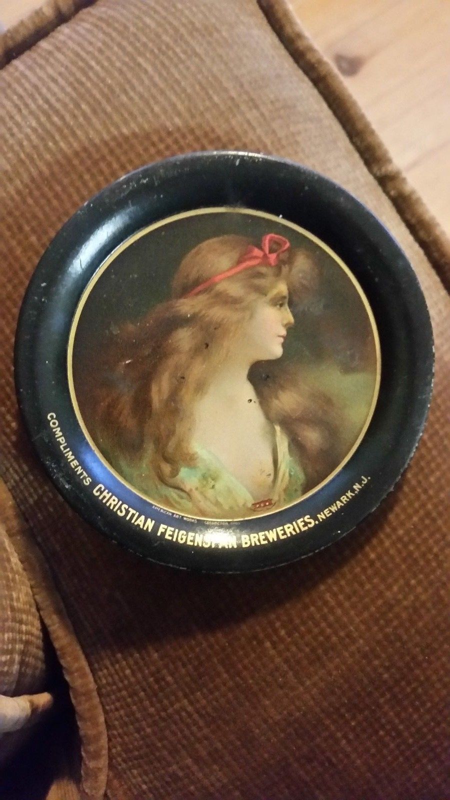 Title (ebay affiliate link): Christian Feigenspan Brewery Advertising Tip Tray Victorian Woman Tin # 4 Newark