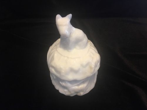 Milk Glass Scotty Dog Dresser Jar With Cover