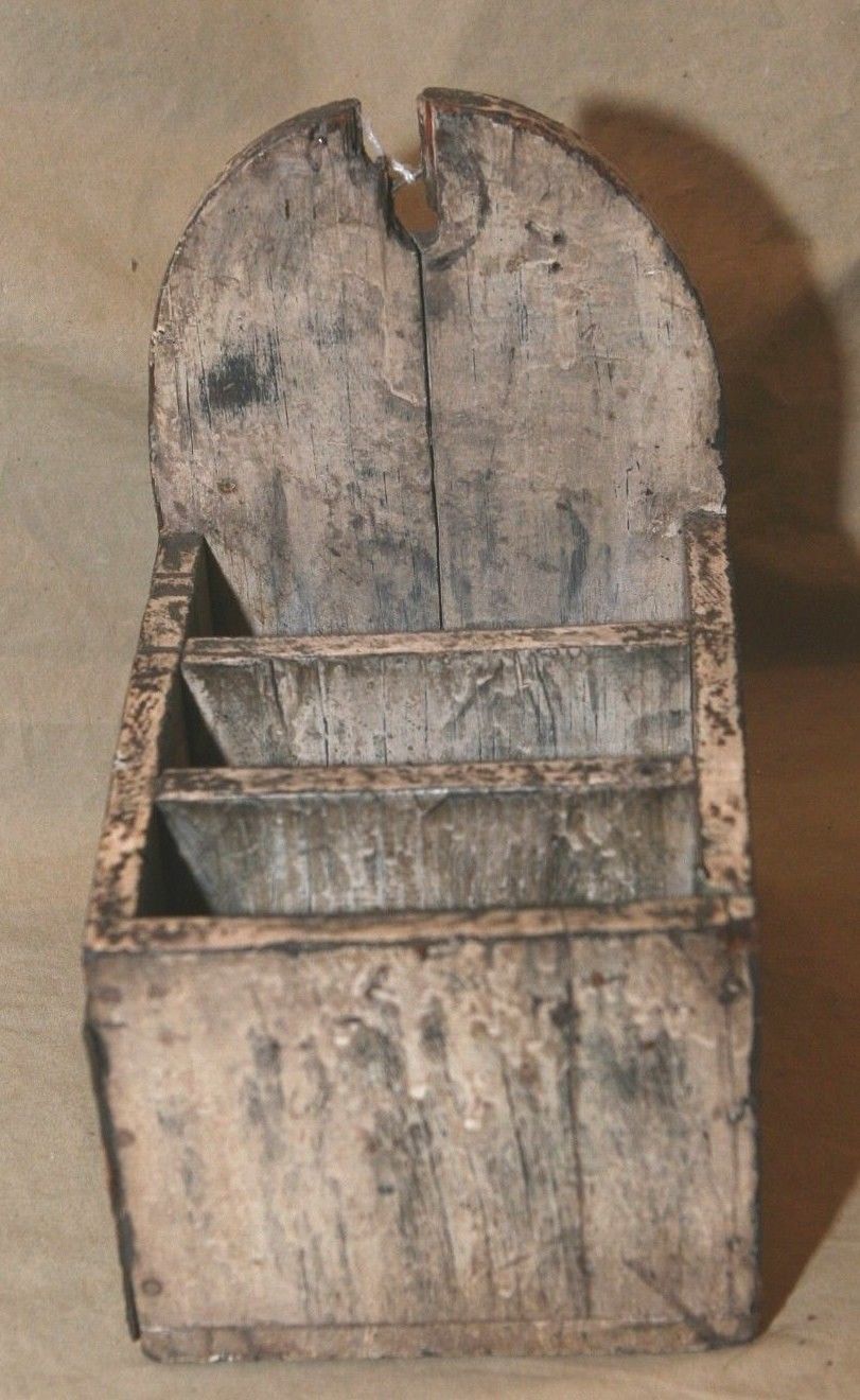 Title (ebay affiliate link): Antique Primitive Painted Wood Divided 3 Section Open Wall Box & Leather Pocket