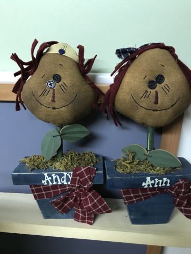 Title (ebay affiliate link): Primitive Folk Art Grungy Tea Stain Raggedy Ann & Andy Flower Pot Decoration Set