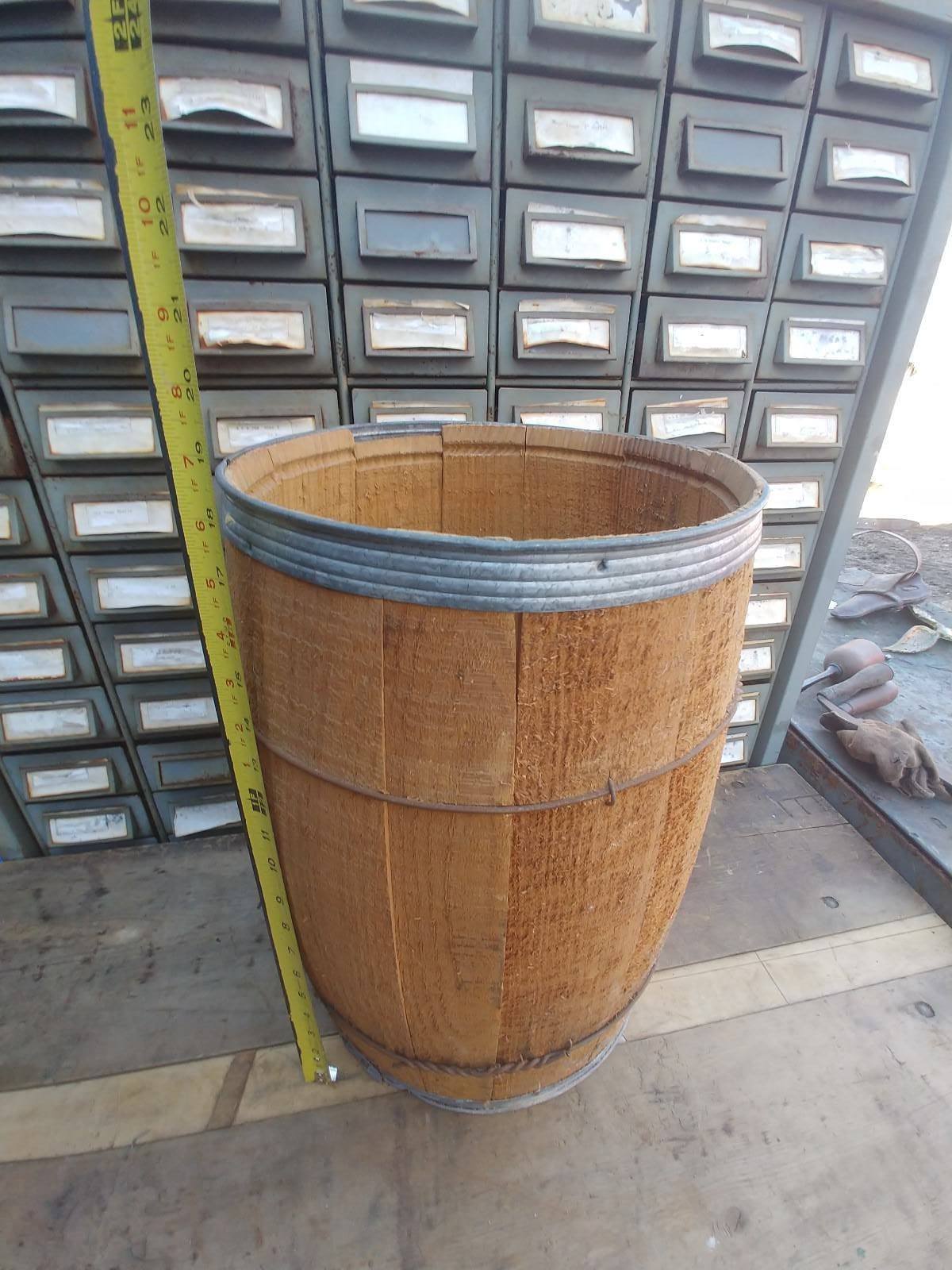 Title (ebay affiliate link): Vintage Wood Nail Keg Primitive Barrel Wire Wrapped 19" large size
