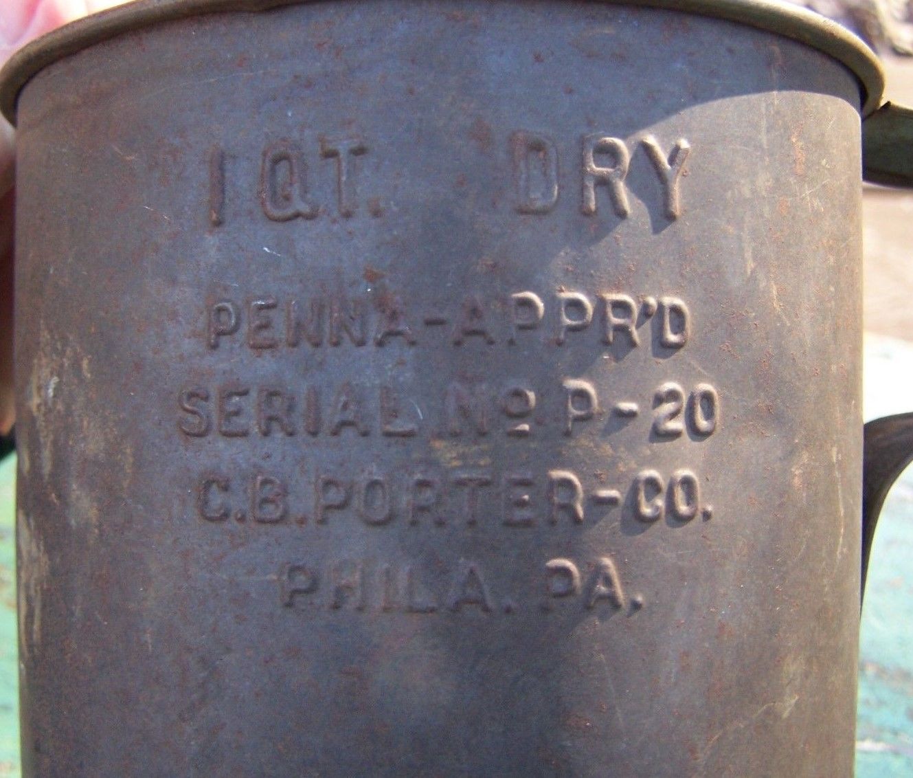Title (ebay affiliate link): Primitive - Antique - 1 QT Dry Measure - PENNA - APPROVED - w/ Serial Number