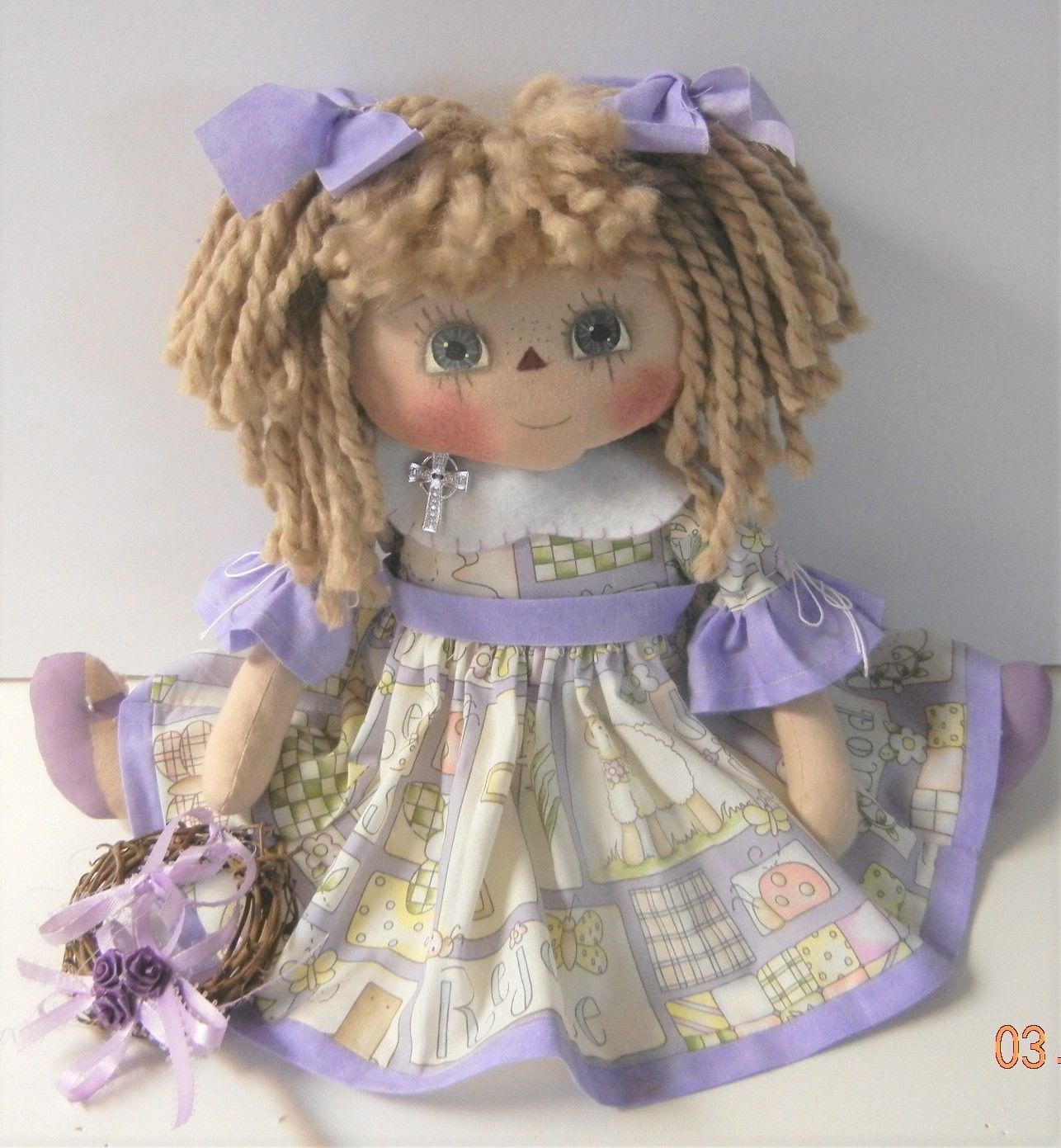 Title (ebay affiliate link): Primitive Raggedy Ann HM EASTER Doll "ALLISON" GRAPE VINE WREATH CROSS SHEEP