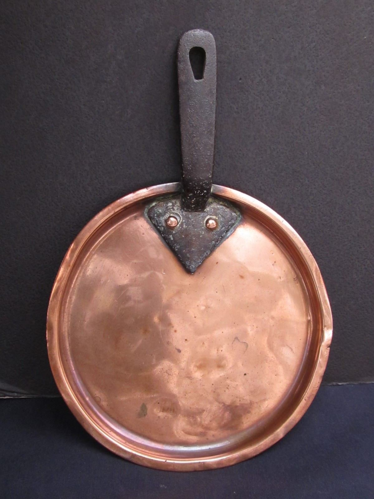 Title (ebay affiliate link): Antique 5 7/8" Copper Pot Lid w/ Iron Handle Kitchen Primitive - England