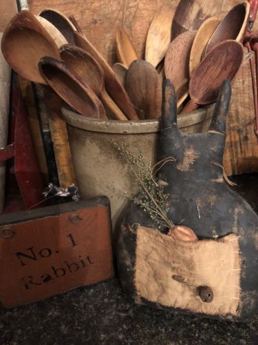 Handmade grungy rabbit with hand painted sign