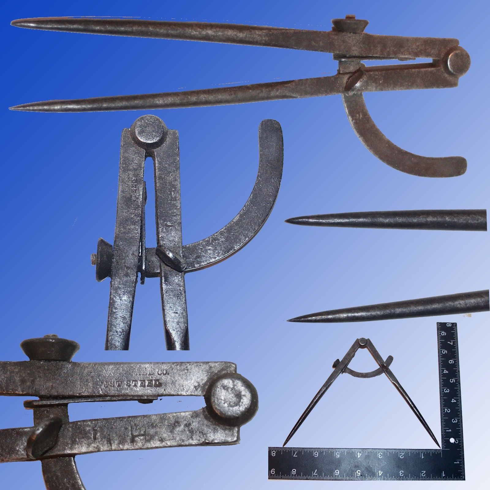 Title (ebay affiliate link): ANTIQUE HAND FORGED CAST STEEL 6" DIVIDERS WITH MAKERS NAME (NOT FULLY READABLE)