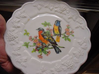 VINTAGE WESTMORELAND MILK GLASS GRAPE BIRD PLATE 81/2"
