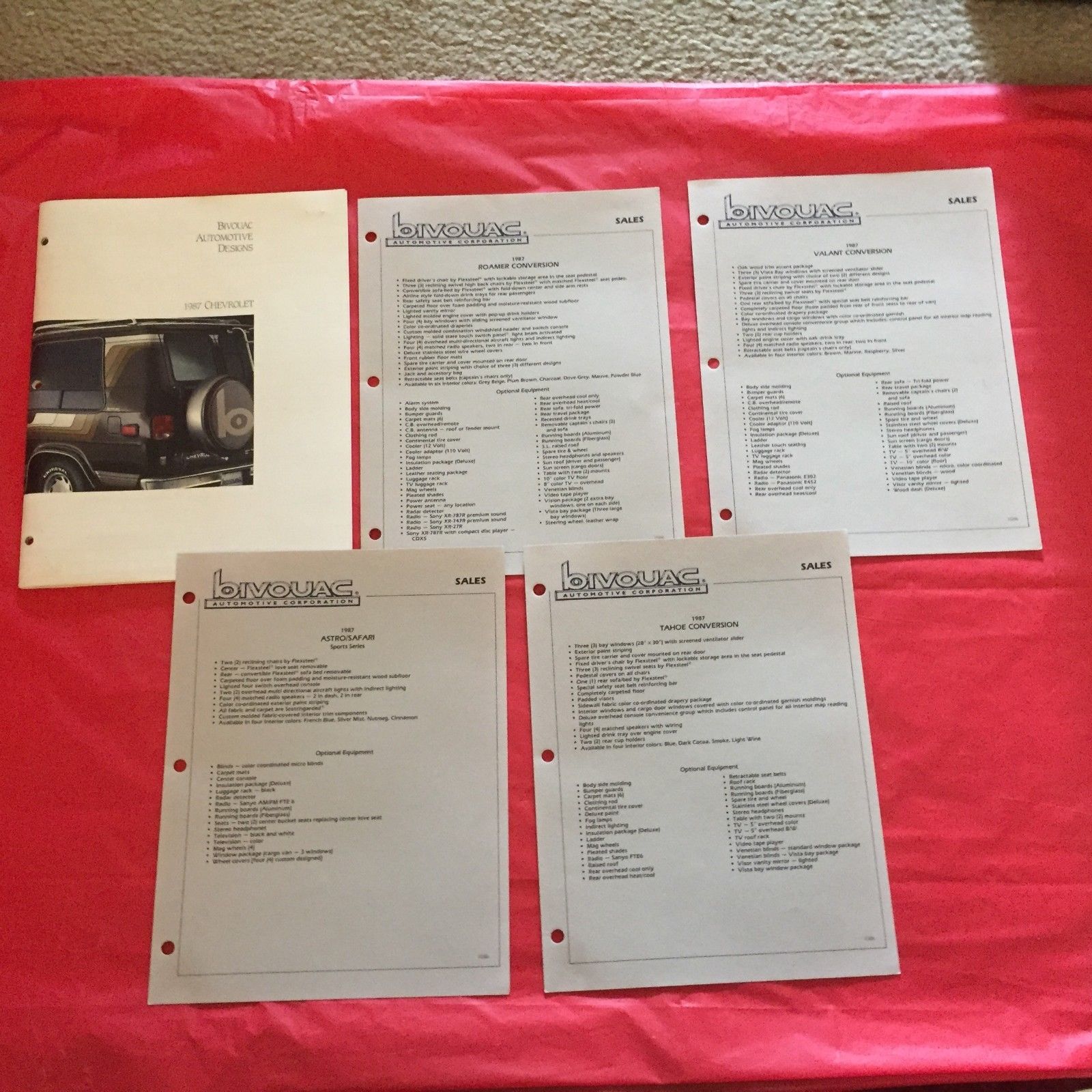 Title (ebay affiliate link): LOT 5--1987 Chevrolet "Bivouac Van Conversion Designs" Dealer Sales Brochure