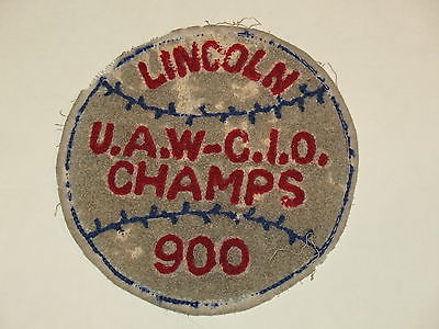rare 1940s LINCOLN U.A.W.-C.I.O. CHAMPS 900 BASEBALL SHAPE PATCH, HARD TO FIND