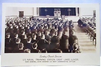 Title (ebay affiliate link): 1942 REAL PHOTO POSTCARD CHURCH SERVIC,U.S. NAVAL TRAINING CENTER GREAT LAKES IL