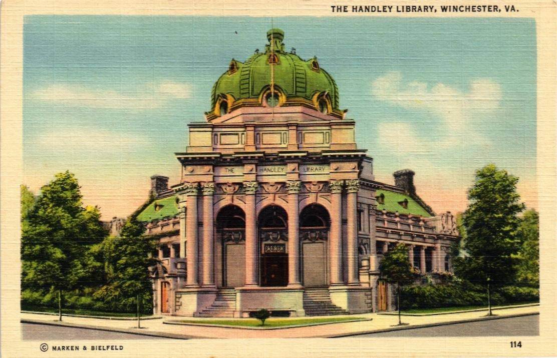 DR JIM STAMPS US HANDLEY LIBRARY LINEN POSTCARD WINCHESTER VIRGINIA