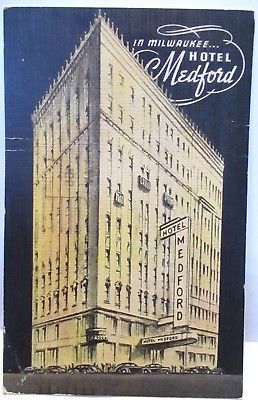 Title (ebay affiliate link): WWII ART DECO POSTCARD " IN MILWAUKEE... HOTEL MEDFORD " MILWAUKEE WI CANCEL